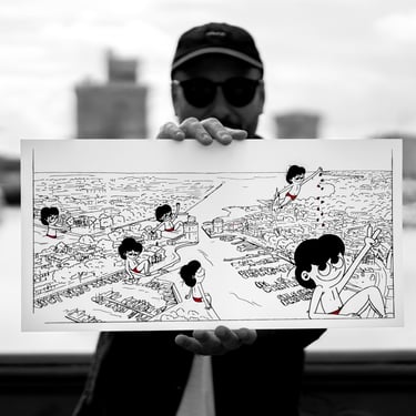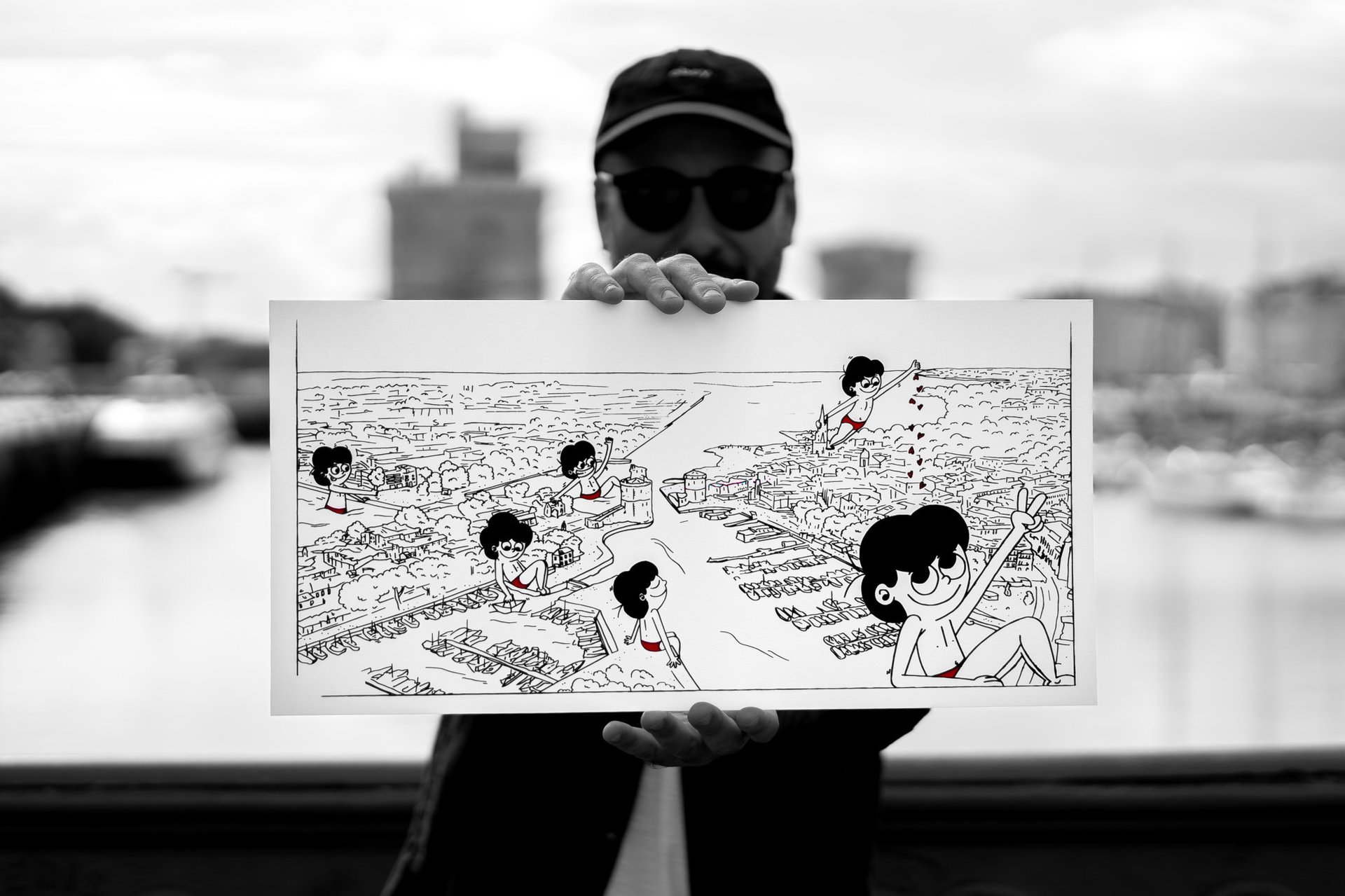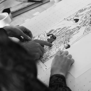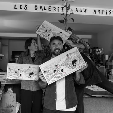 Le reportage a été réalisé pour documenter le travail artistique de Superbourdi, mettre en valeur les gestes et l’expertise de l’Atelier de Travers, (atelier de sérigraphie artisanale basé à La Rochelle), puis produire une photographie dédiée à la présentation et à la mise en vente de l’œuvre sur les réseaux et plateformes de revente.